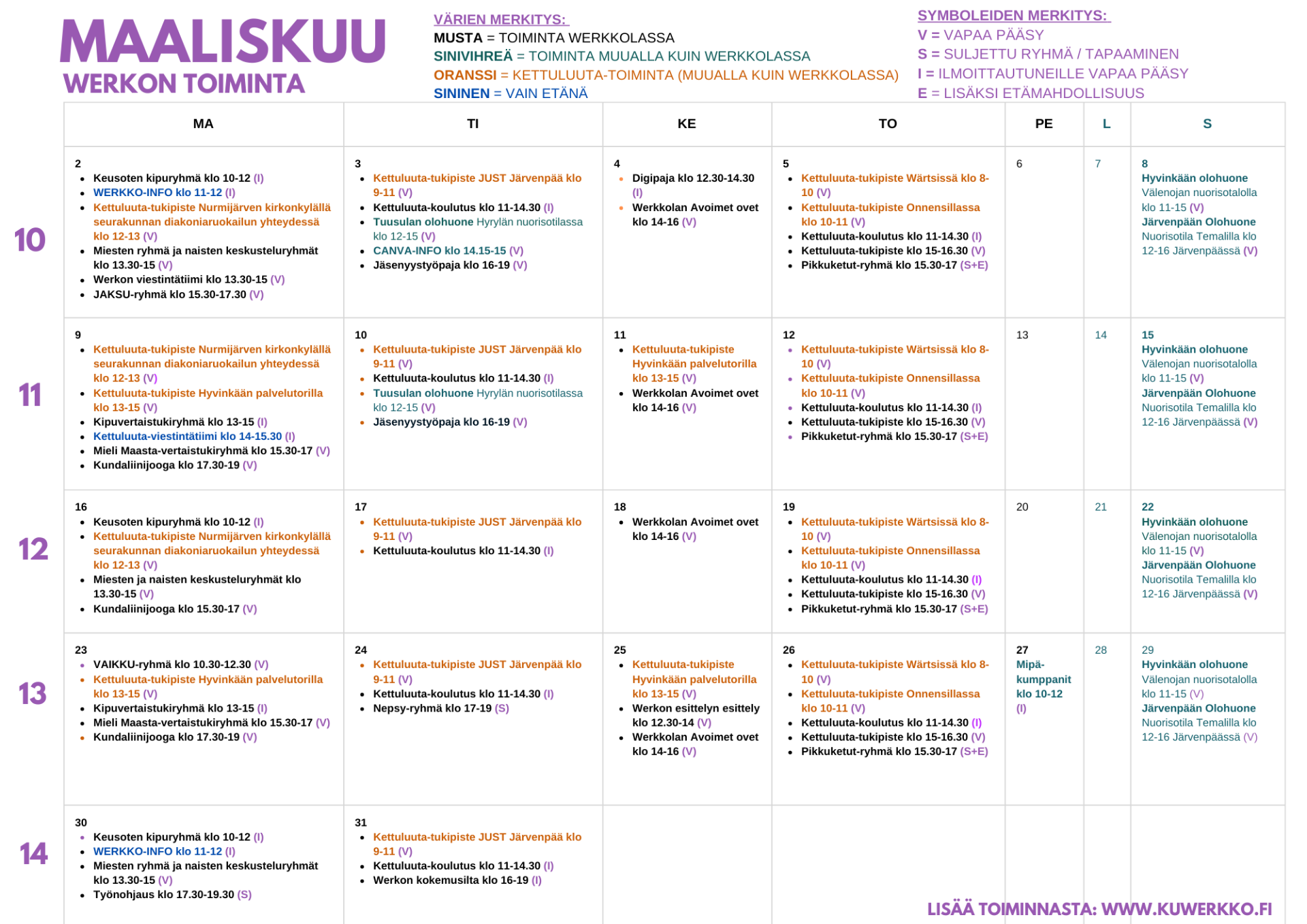 Werkon toiminnassa noudatetaan yhteisiä Kaikkien Werkko -periaatteita: https://www.kuwerkko.fi/kaikkien-werkko/