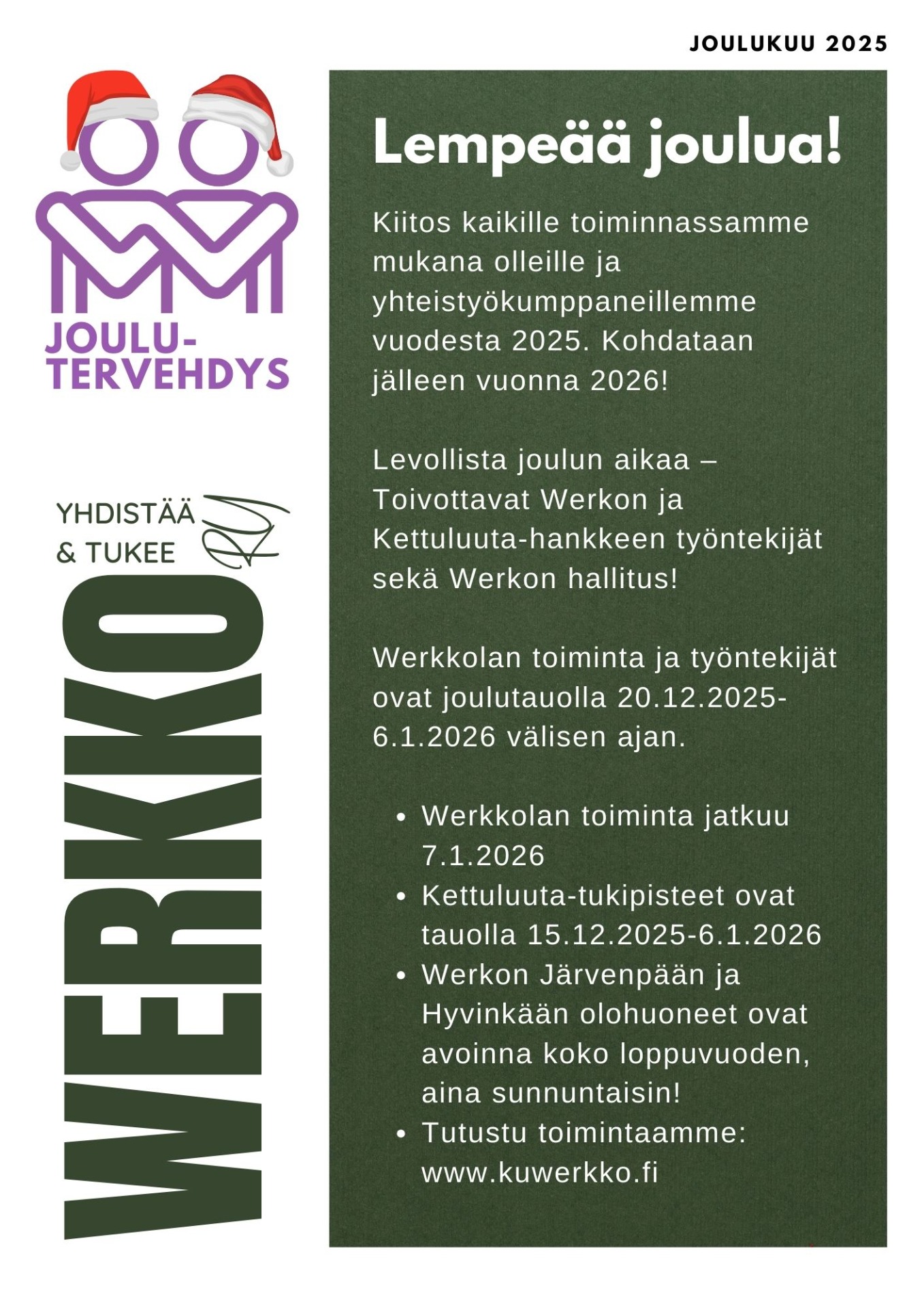 varten. Tietoja käsitellään Werkko ry:n tietosuojaselosteen